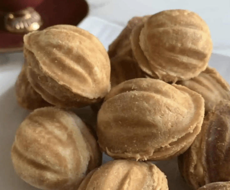 The little walnut shaped cookies, filled with caramel cream, are fun and exciting.