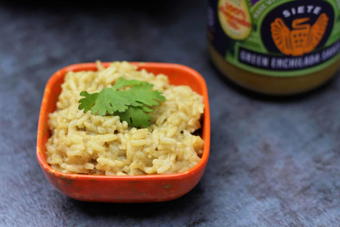 Jarred enchilada sauce makes this rice recipe super easy, ready in 15 minutes. Recipe: Green Enchilada Rice