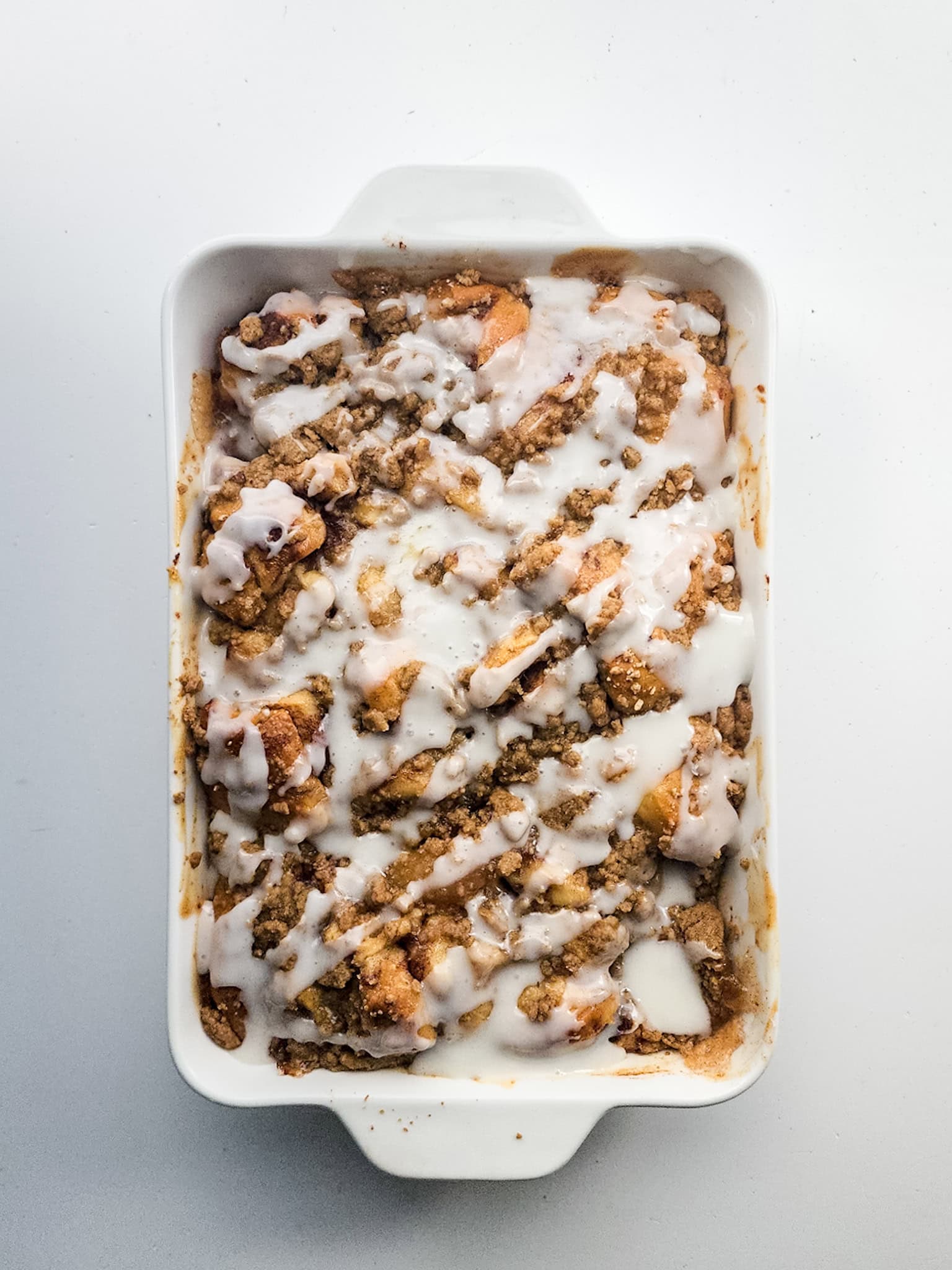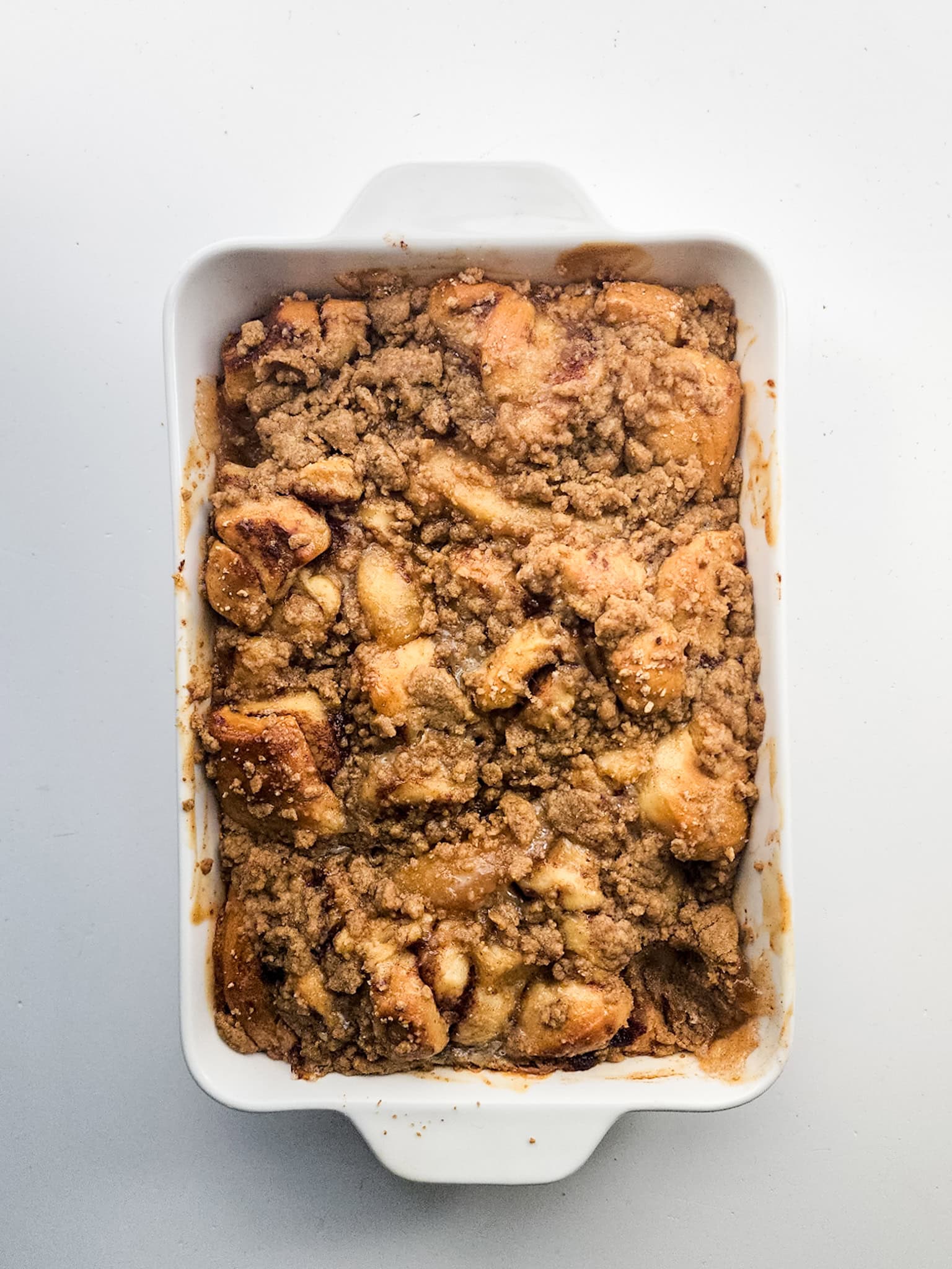 You can also sub dairy free and gluten free ingredients, making sure to use gluten free and dairy free cinnamon rolls if you need them and you can find them. That might be the trickiest ingredient to substitute.