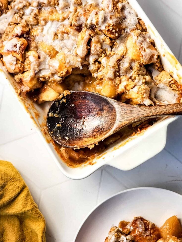 Cinnamon Roll Apple Crumble is a super simple breakfast or dessert recipe that will wow everyone!