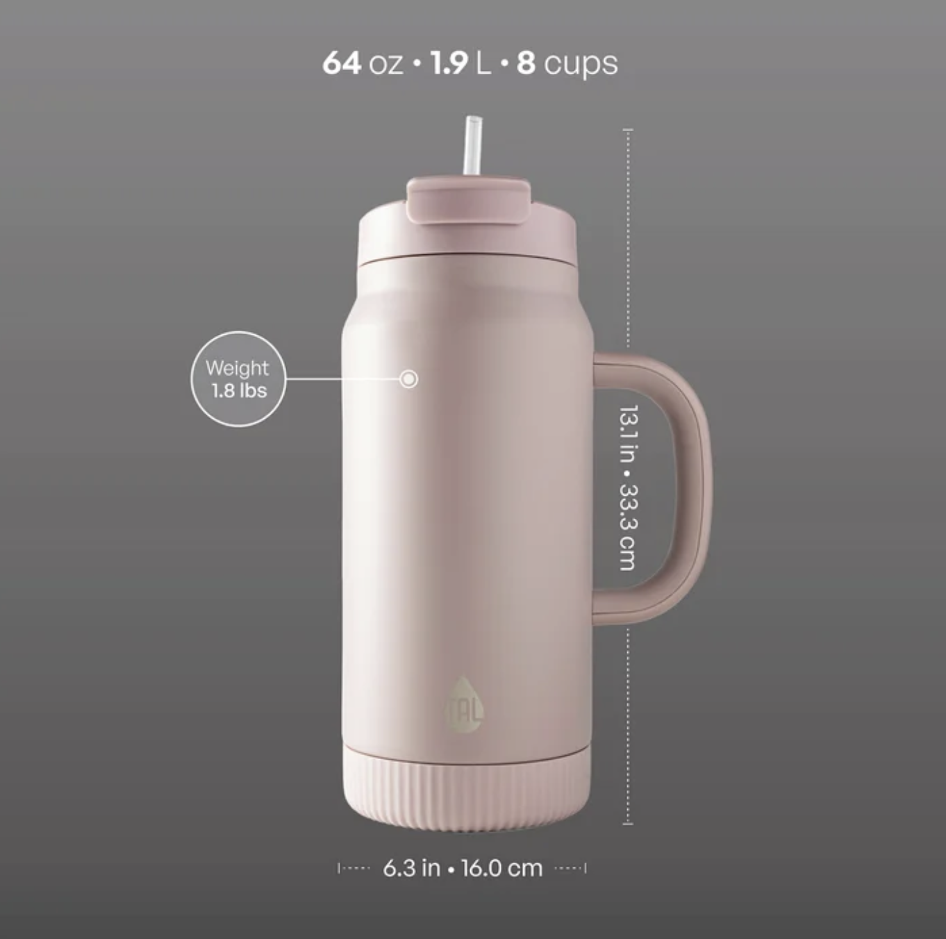 The TAL 64 oz tumbler makes a great gift because its large capacity means less refilling during long days (at work, workouts, or road trips), and its double-wall insulated stainless steel design keeps drinks hot or cold for hours, meaning they stay at the right temperature even in heat or the sun.