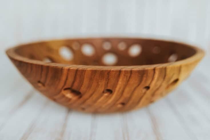 A wooden fruit bowl from Holland Bowl Mill makes an excellent gift because it combines craftsmanship, functionality and timeless style. The bowls are crafted in the U.S. from solid hardwoods (walnut, cherry etc.) and one model features air-circulation holes to help fruit stay fresh longer.