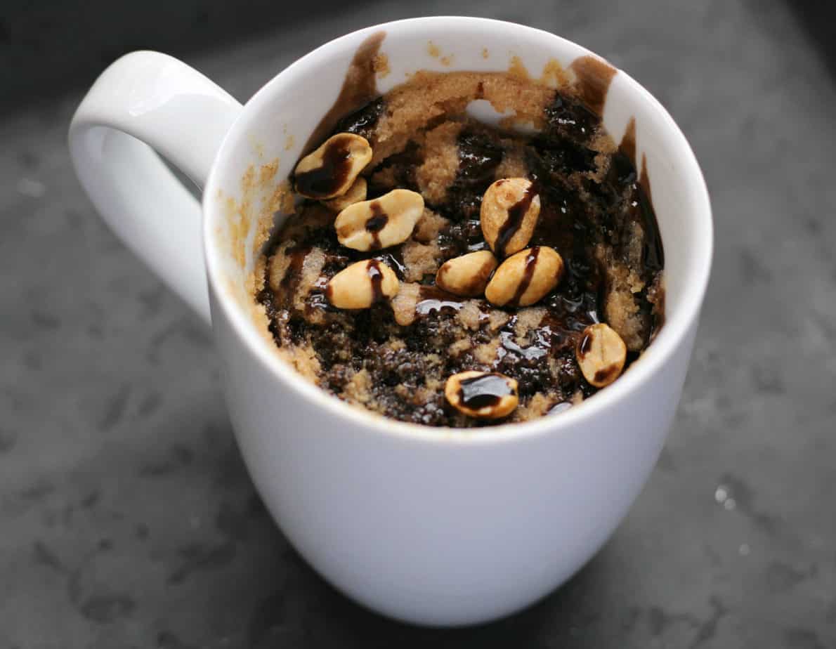 This quick and easy peanut butter chocolate chip mug cake for one is decadent and satisfying! Get the recipe here: Peanut Butter Chocolate Chip Mug Cake