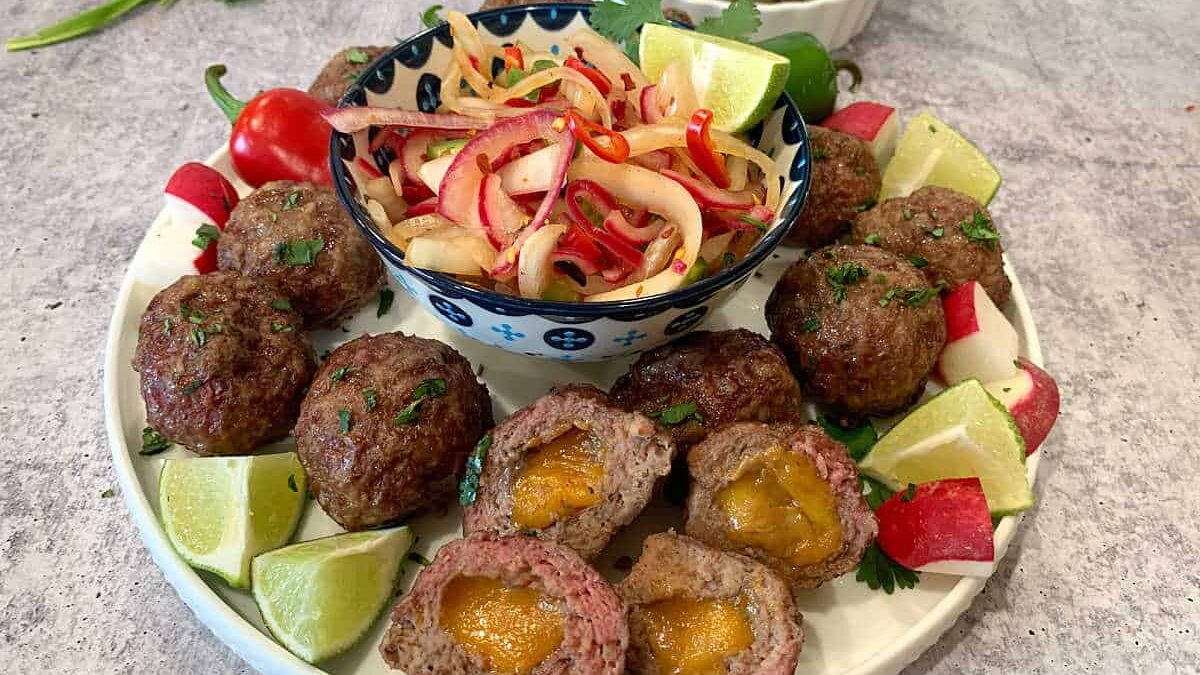 Savor the flavors of homemade Tex-Mex Mexican meatballs. They are ideal as a main dish or appetizer. What makes them truly exceptional? The gooey cheddar cheese filling that melts in every bite. Get the recipe: Cheesy Mexican Meatballs