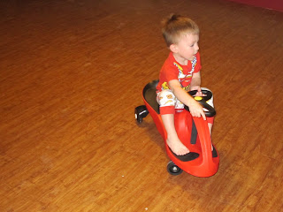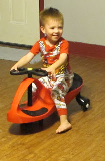 When Captain Fussybuckets first got his PlasmaCar, he had never seen one before and we didn't tell him what to do with it, he just got on and started GOING! He can zoom around the room on his PlasmaCar and thinks it's the coolest thing ever. And you know that since it holds up to 220 lbs, that Daddy and I both had to try it out. The PlasmaCar is so much fun for all ages.