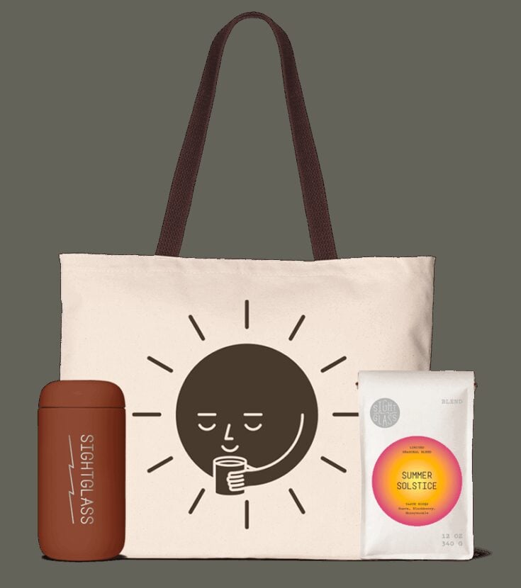 This set is great for any coffee lover! A bundle made for slow mornings, spontaneous road trips, and everything in between. This set includes the limited release Summer Solstice whole bean coffee, the sleek Fellow Carter Move Mug, and an adorable Sun-Buddy Tote. This will be your tote for all markets, meetups, and summer time moments.