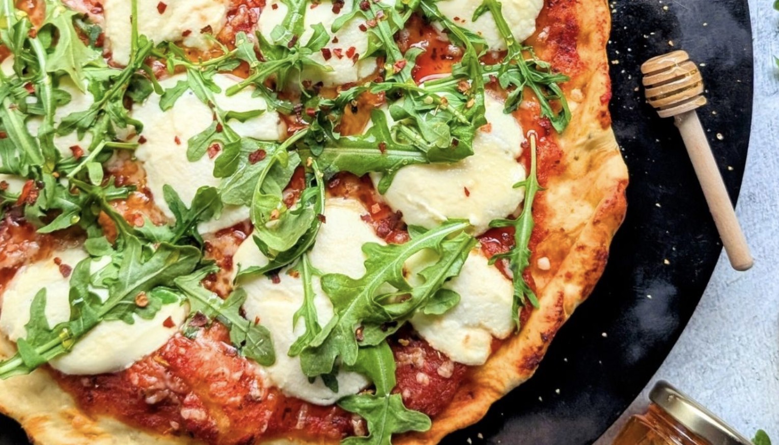 Hot Honey Pizza with Ricotta & Arugula
