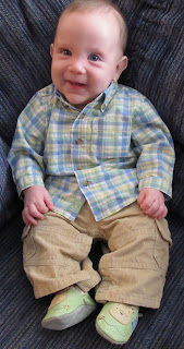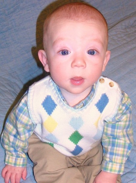 I remember the day the above picture was taken, simply because it was Easter. He was sleeping better at night, but I remember trying to get him to sleep at church. He refused to! He just kept popping his head up and looking around at all the people! He always has been curious and interested in other people! I think he stayed up for 6 or so hours! It was crazy!