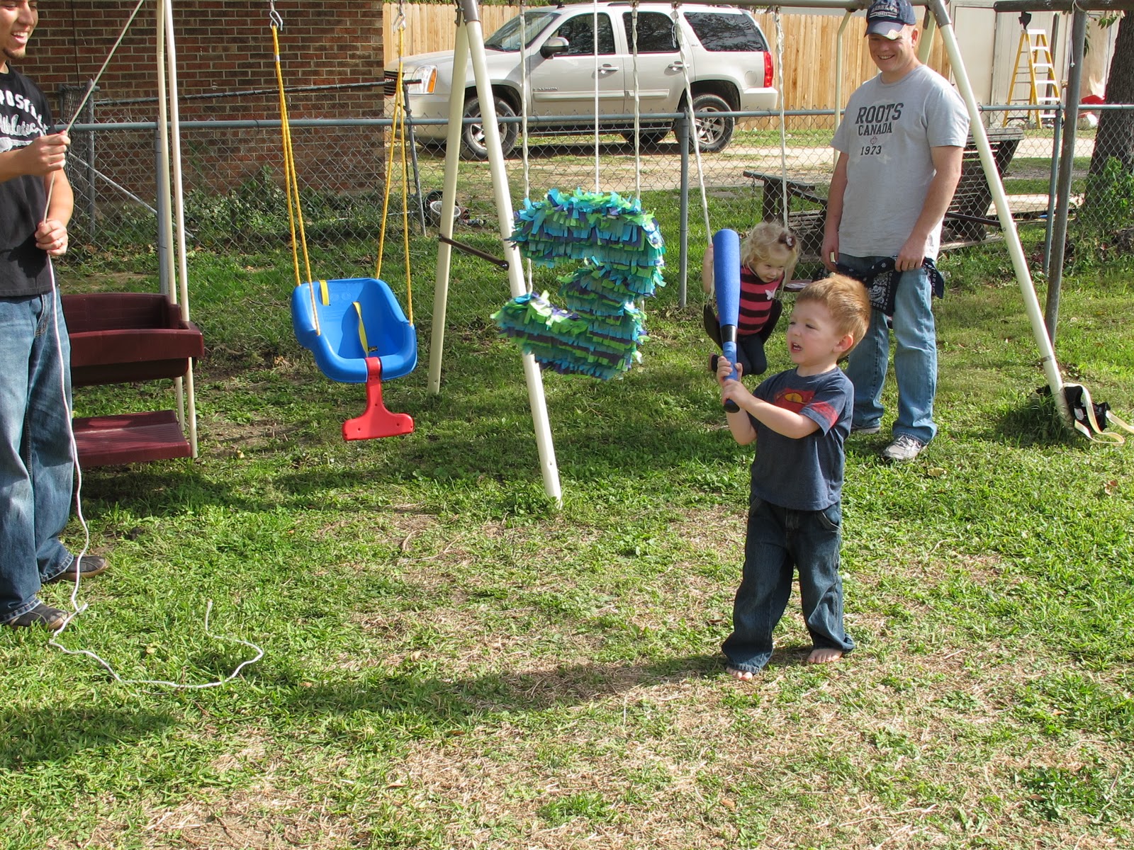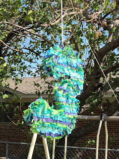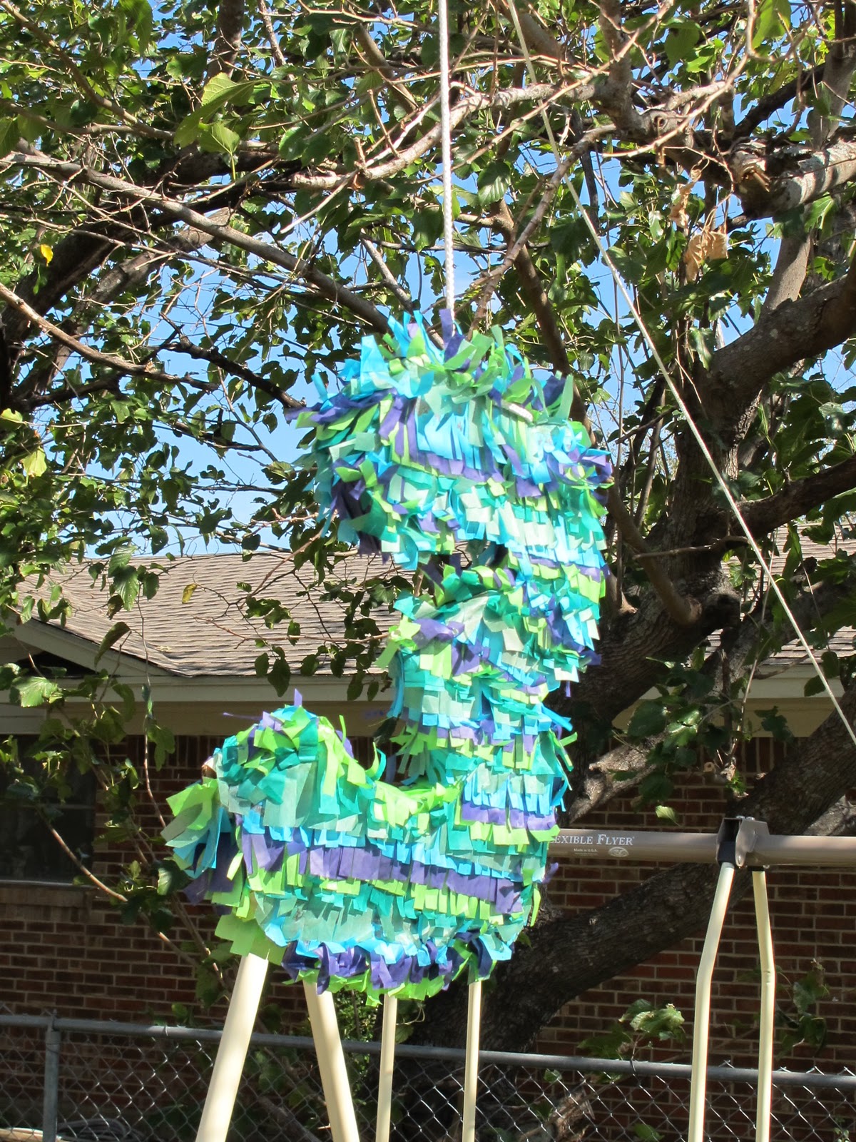 I was pleased with the appearance of the final product, but the 3 year olds could NOT break it. I know you're thinking "of course! You wrapped it in masking tape!" haha! So, we helped out the process a little and it eventually broke and the candy spilled out!